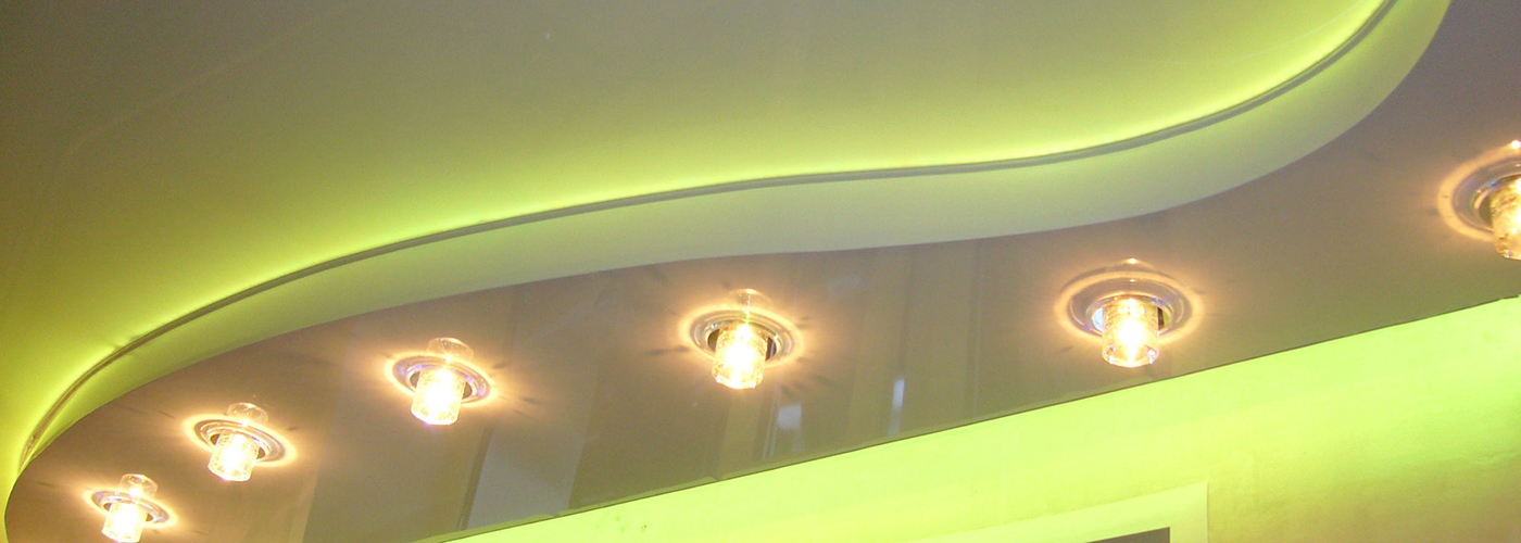 Для подсветки данных потолков используются различные осветительные элементы. В зависимости от вашей задумки мастера подберут для вашего помещения правильный осветительный элемент. Кстати, лампы могут быть не только белыми, но и цветными, в зависимости от ваших пожеланий и идей. Более того, цветные лампы могут залить определенным цветом какой-то участок потолка, если это необходимо. Это также придаст вашему потолку оригинальности и изысканности.